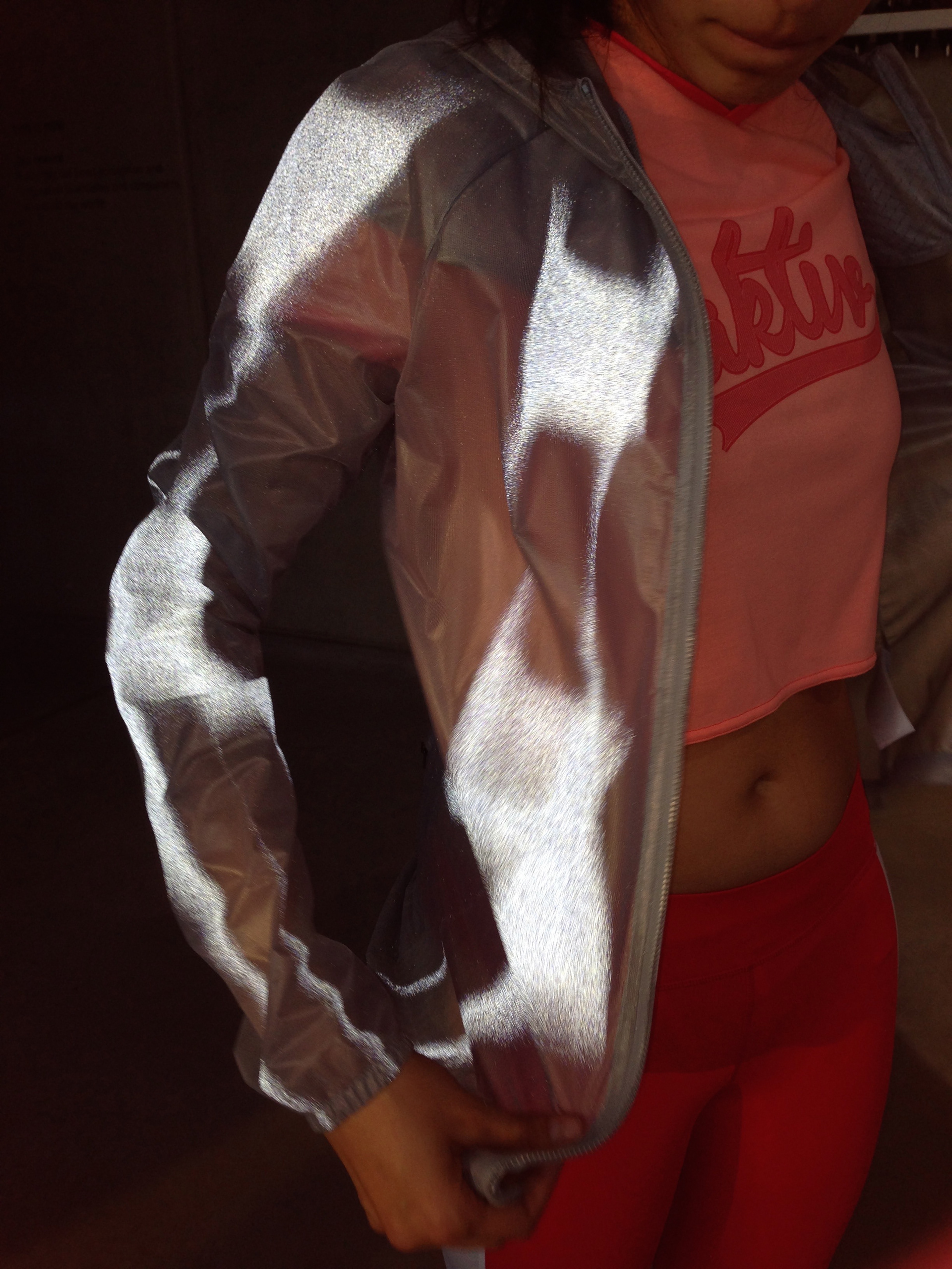 During my residency at the Brooklyn Farm, I explored combining seamless-knitted fabric with light-weight woven to create better fits for running apparel jackets. The knits are used on the waist area and lower sleeves so the jacket would stay fixed on the torso ,while the chest was protected in a wind-proof woven material. The styling was created in a way to appeal to the urban runner who focuses on trends. Visually the jacket comes across as athleisure but in reality is full of technical features.